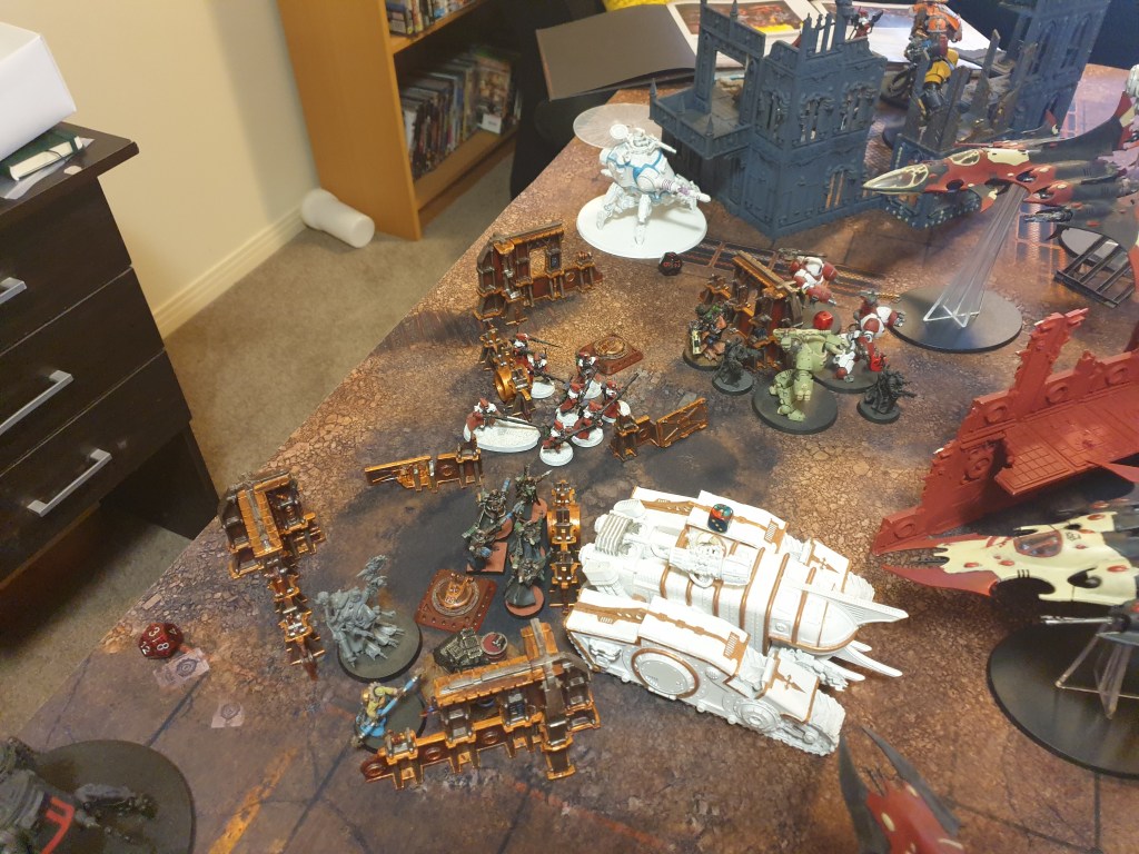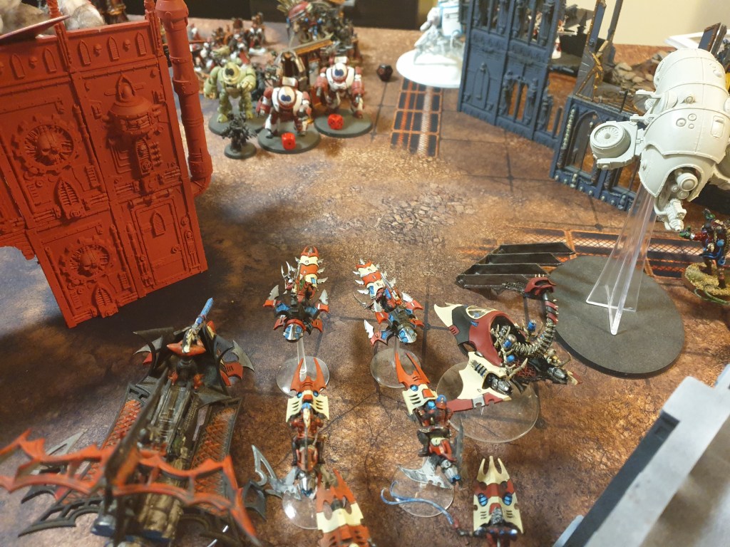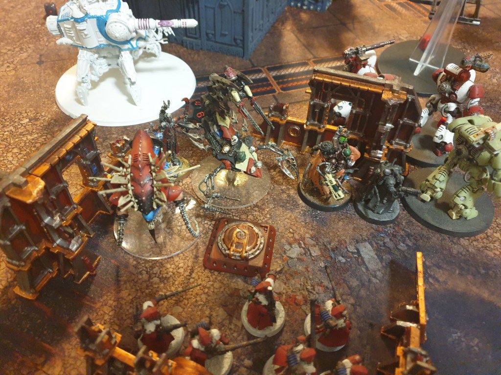 The game is called at the end of turn three after my drunk ass forgot to take photos for most of the turn. The Kabal of the Screaming Skull and the XIIIth Special Purpose Detachment both score equal objectives. Neither army took Hold the Line or Slay the Warlord, and the Kabal edge ahead of the Mechanicum to take Attrition by 1 kill point, leaving the score at 10vp to 9vp in the favour of the dark kin. Such a close match, with my opponent taking his full force on the table for the first time. Could have easily turned the other way had we played turn 4, but we’d already played for ten hours and had sunk way to many beers by then. Excellent, bloody and riveting game!