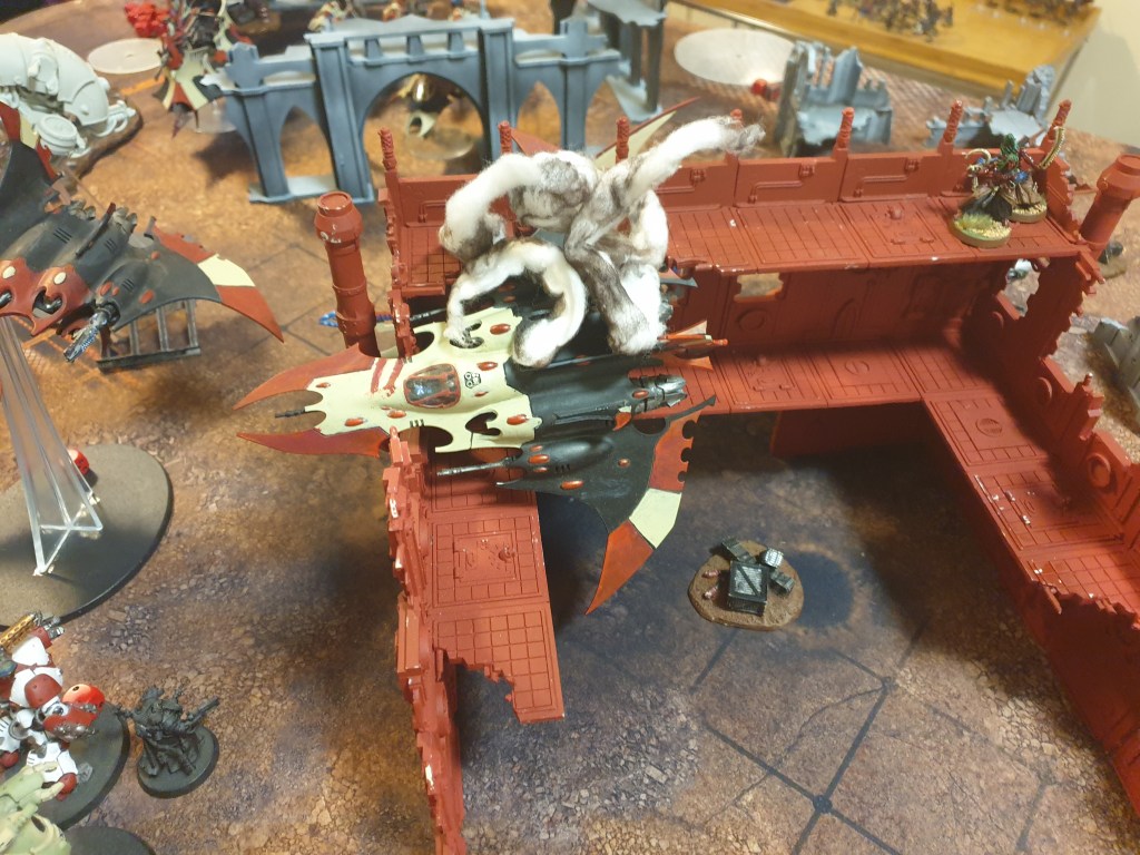 The AA crawler downs a Razorwing and it crashes into the Manufactorum. Heavy fire downs most of the Mandrakes.