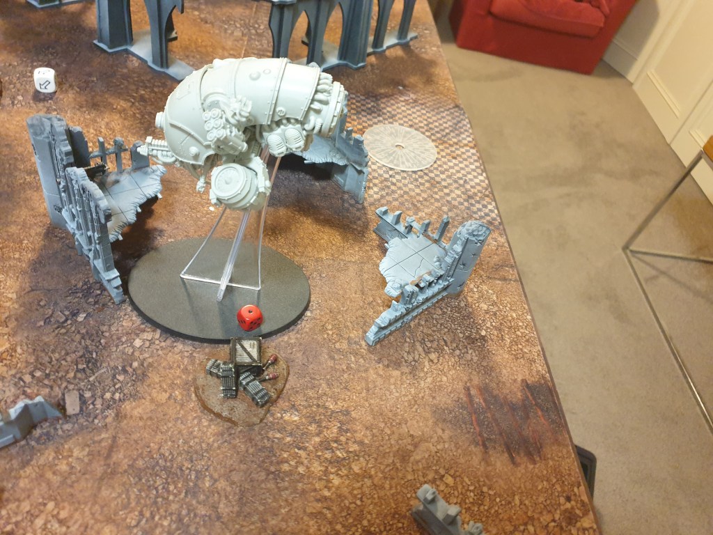The Mechanicum infantry surge forward, while the Exploratar is stunned in place.