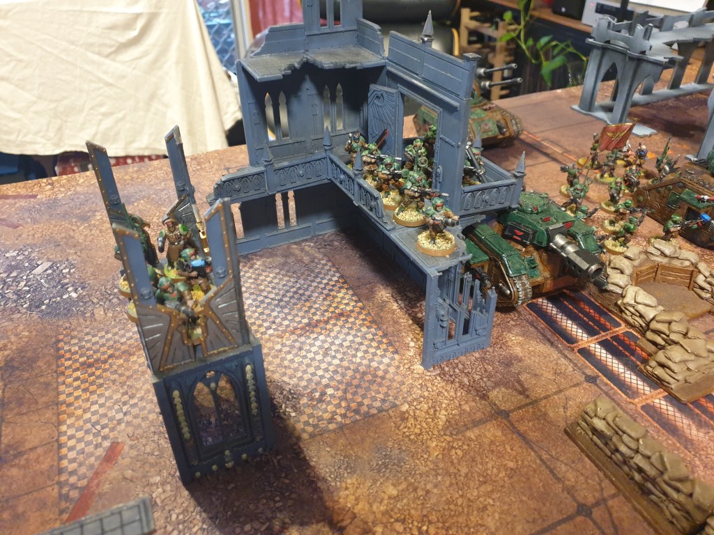 The heavy bolter teams form a firebase on top of the ruined sanctum.