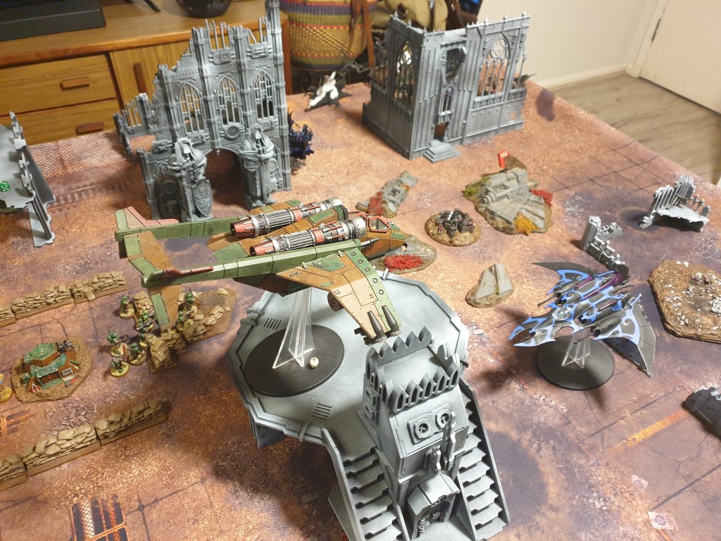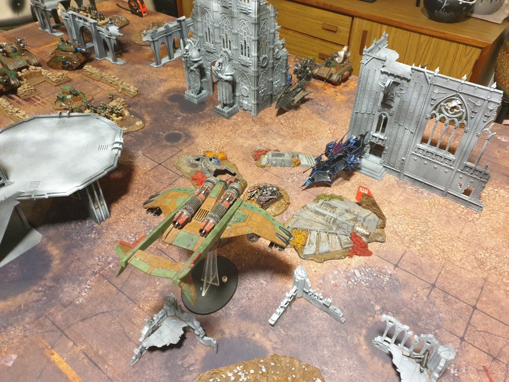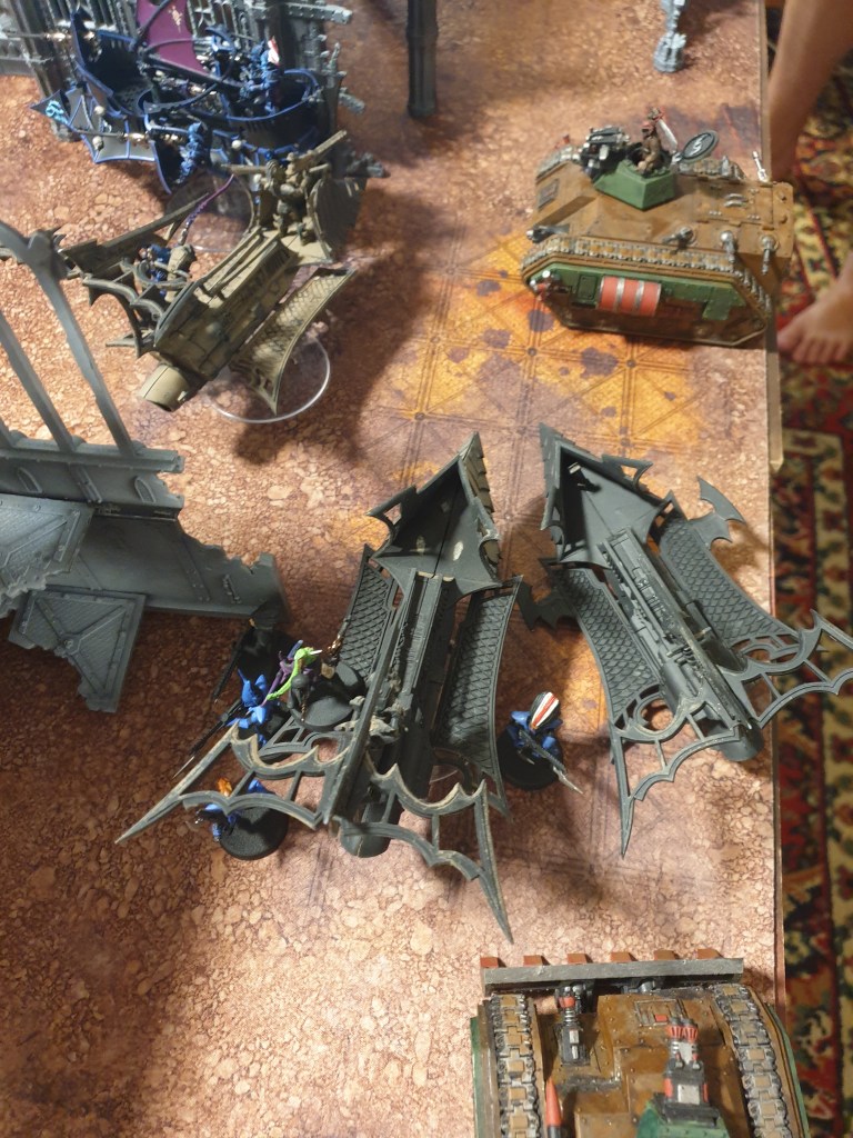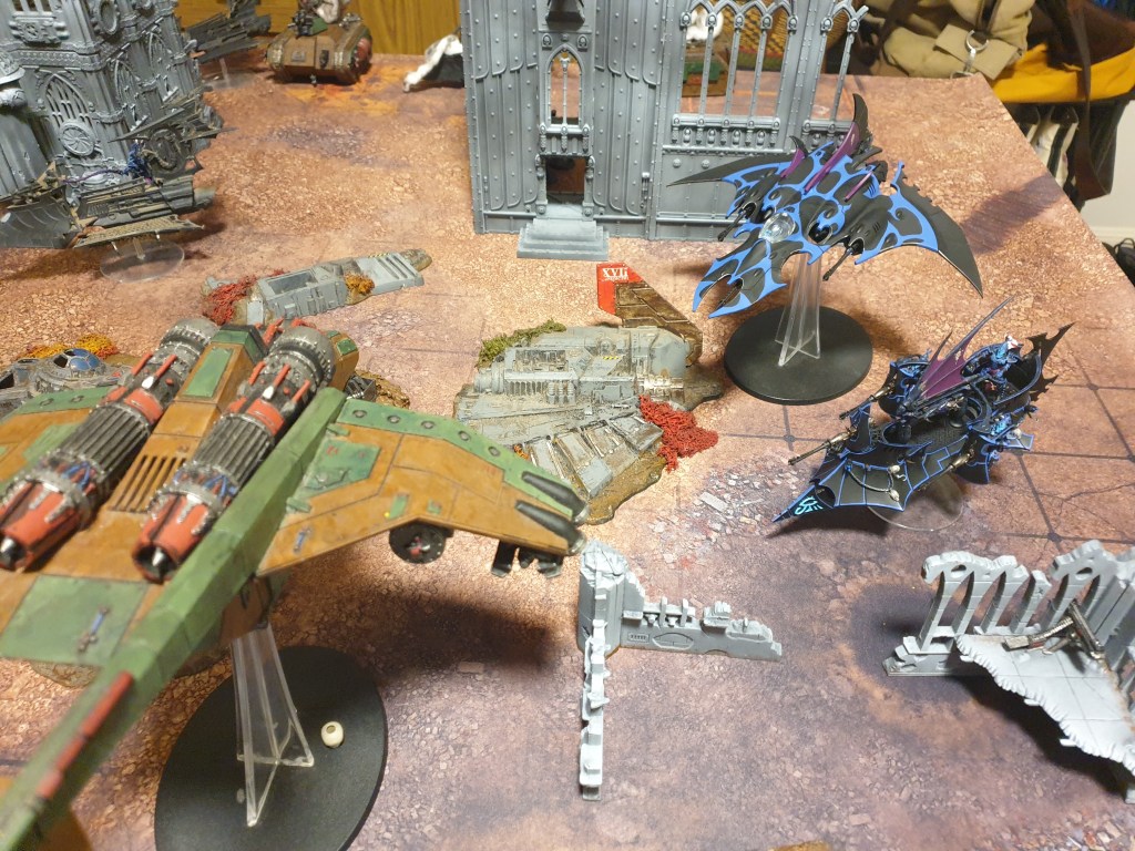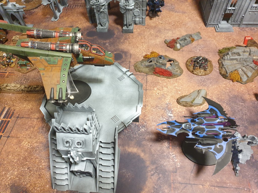 The razorwing and ravager line up the valkyrie and finally take it down, clearing the table quarter.