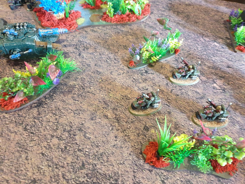 The other bike squad moves for the centre, while the laser destroyer lines up a shot on enemy armour.