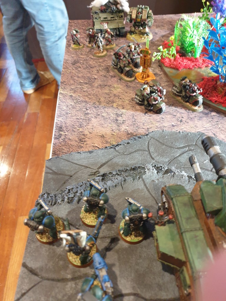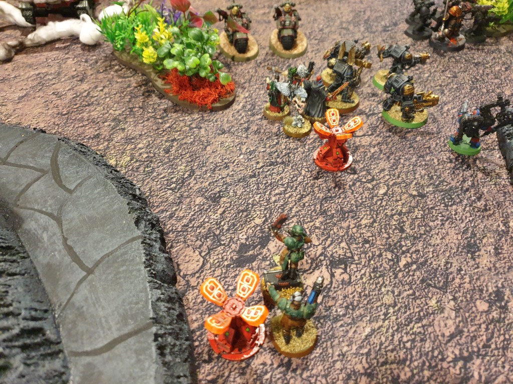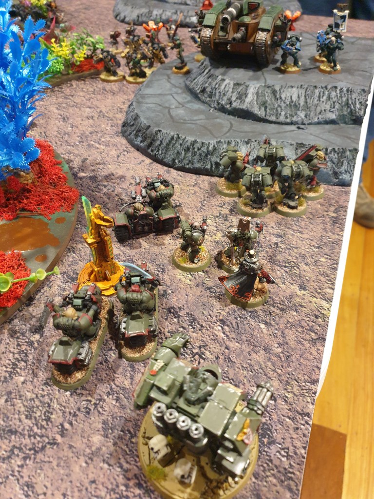 Tyranoc pushes forward to assault the bikes and the techmarine joins the terminators to assault the Crimson Watch chapter master.